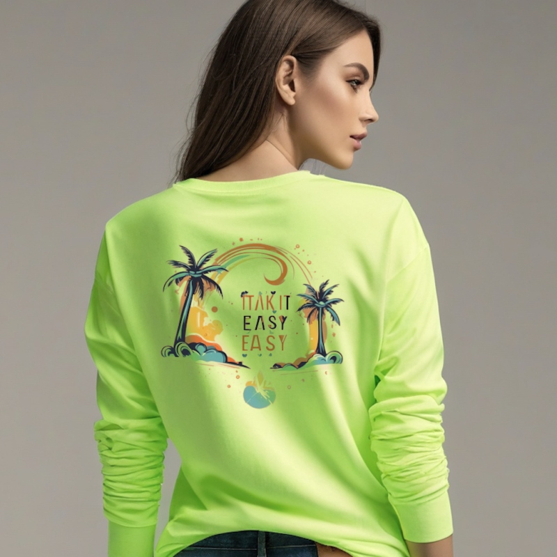 Take It Easy Graphic T-Shirt – Neon Green Cotton Long Sleeve for Her