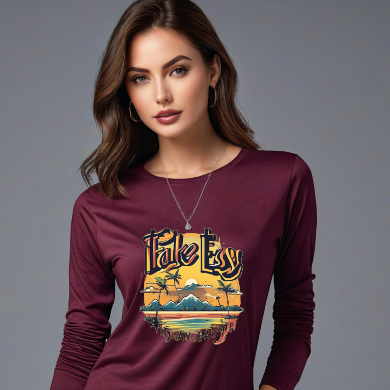 Take It Easy Women’s Tee – Soft Cotton, Wine, Long Sleeves