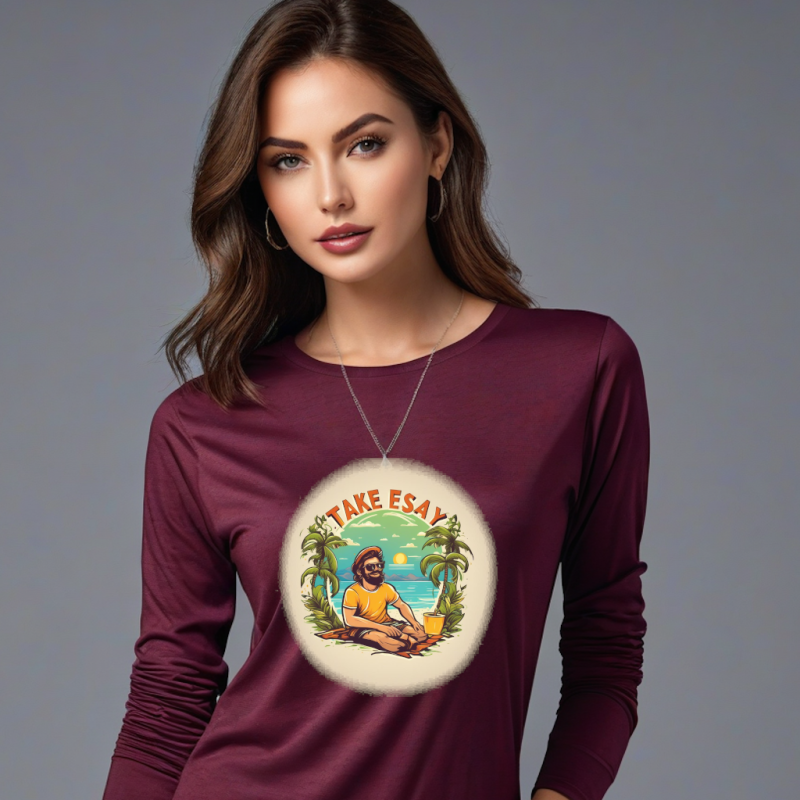 Take It Easy Women’s Tee – Soft Cotton, Wine, Long Sleeves