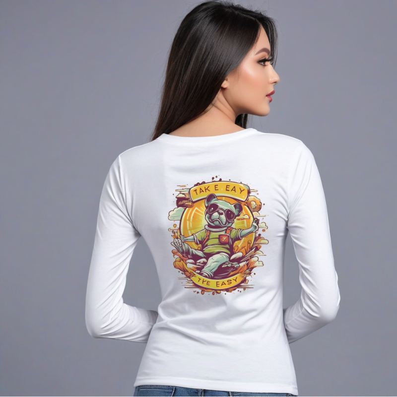 Women’s White T-Shirt – Full Sleeves, Take It Easy Quote, Cotton Fabric