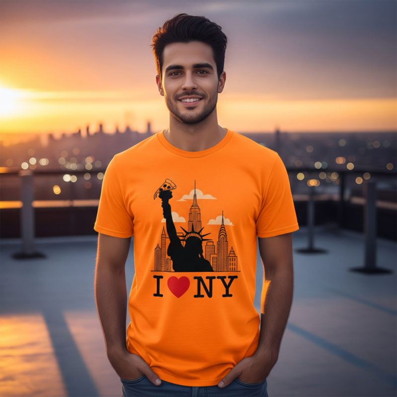 Designed for men who live bold, this New York graphic t-shirt in bright orange is all about making a statement. Crafted from 100% pure cotton with a sturdy 250 GSM build, it combines comfort with long-lasting wear. The classic round neck and half sleeves give it a timeless casual vibe, while the striking New York print brings an edge of modern streetwear to your look. Highlights: Heavyweight 250 GSM cotton – durable & breathable Vibrant orange color with New York city print Half sleeves & round neck for relaxed styling Ideal for casual wear, travel, or urban street fashion A must-have for men who want to bring NYC vibes into their everyday style. |