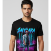 Men’s Black T-Shirt with Saiyaara Movie Theme Print, 100% Cotton, Half Sleeves, Round Neck, 250 GSM