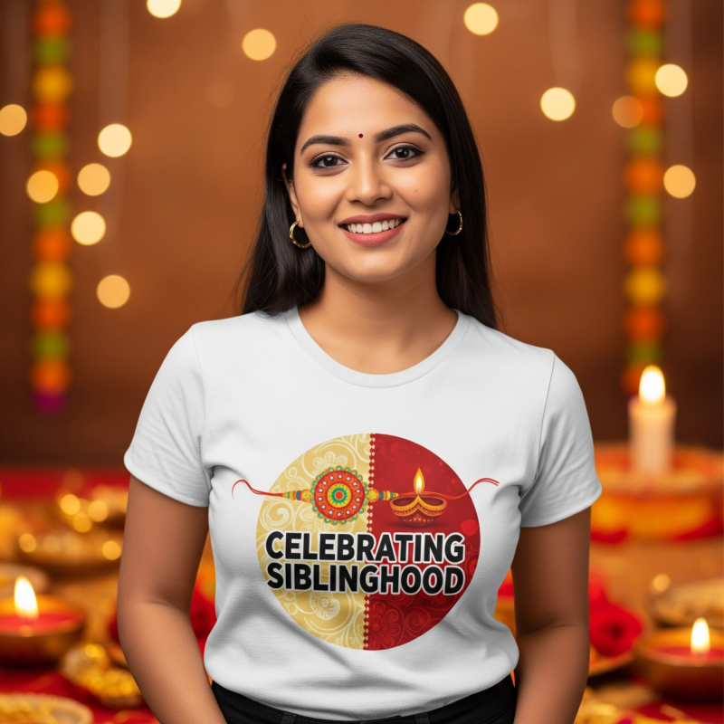 Women’s White T-Shirt, “Celebrating Siblinghood” Tagline, 100% Cotton, Festive Edition
