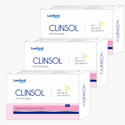 Achieve pimple-free, healthy, and refreshed skin with Clinsol Anti-Acne Soap – Tea Tree Oil & Vitamin E (Pack of 3).