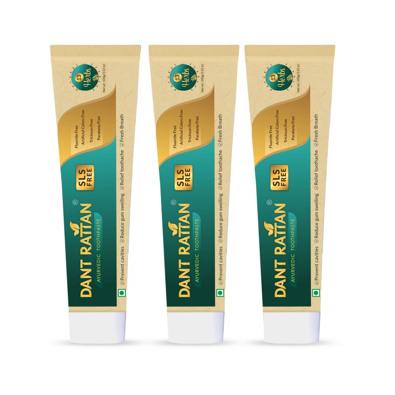 Dant Rattan Ayurvedic SLS Free Toothpaste – 100gm (Pack of 3) Triple Herbal Protection for Teeth, Gums & Breath Upgrade your daily oral routine with the natural power of Dant Rattan Ayurvedic SLS Free Toothpaste, now in a pack of 3 for lasting care. Formulated with a unique blend of Ayurvedic herbs and free from SLS, this toothpaste offers a gentle yet effective solution for maintaining strong teeth, healthy gums, and long-lasting freshness. Its herbal ingredients help fight cavities, soothe sensitivity, reduce gum swelling, and eliminate bad breath—making it your complete Ayurvedic defense against everyday dental issues. Safe for the entire family, it delivers cleanliness without compromise. Core Benefits: • Naturally relieves toothache and gum swelling • Combats bacteria, plaque, and oral infections • Reduces sensitivity to hot and cold • Keeps your breath fresh and clean all day • Strengthens enamel and improves gum health • SLS-free, gentle, and suitable for daily use Herbal Actives Include: • Tumbru Beej – Natural antibacterial action • Akarkara – Strengthens gums and teeth • Vidang – Fights oral bacteria • Karpura (Camphor) – Soothes pain and inflammation • Daal Chini – Prevents infections and adds aroma • Phitkari (Alum) – Tightens and protects gums • Lavang Oil – Reduces pain, freshens breath • Eucalyptus & Peppermint Oils – Cooling, refreshing feel • Ghrit Kumari (Aloe Vera), Sunthi, Akhrot Chhal, Karri Patta – Heal and nourish How to Use: Brush twice a day with a pea-sized amount. Rinse thoroughly. Safe for daily use by all age groups. 🟢 This is a vegetarian product. |