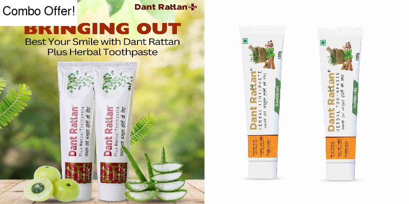 # Dant Rattan Herbal Toothpaste – 100gm with Dant Rattan Plus Herbal Toothpaste - 100gm (Pack of 2) Indulge in a revolutionary oral care experience with the Dant Rattan Herbal Toothpaste duo pack. Specially formulated to harness the essence of nature, this toothpaste not only cleanses but also revitalizes your oral health, ensuring a sparkling smile every day. * Herbal Goodness: Crafted with a unique blend of herbs and natural ingredients, Dant Rattan toothpaste promises to provide a holistic oral care solution. * Fresh Breath & Healthy Gums: Say goodbye to bad breath and gum issues with every brush, thanks to the potent herbal extracts working in your favor. * Cavity Protection: Helps strengthen teeth and protect against cavities, ensuring a healthy smile that lasts. Dant Rattan Plus Herbal Toothpaste takes your oral care routine to the next level! This premium variant within the pack is enhanced with advanced herbal formulations to offer: * Whitening Power: Say hello to naturally whiter teeth without harsh chemicals. * Gum Care: Formulated to soothe and care for sensitive gums. * Long-lasting Freshness: Experience freshness that lasts all day, every day! > "Embrace the power of nature with every brush and let your smile shine bright, naturally!" Whether for daily use or as a travel companion, this dual-pack ensures your family’s oral health is always under nature’s care. Convenient, effective, and gentle on the teeth, it’s truly a family essential. Packaged with eco-friendly materials, our commitment to sustainability ensures that while you care for your teeth, you’re also caring for the planet. Transform your oral care routine with the Dant Rattan Herbal Toothpaste Pack of 2. Experience the purity and power of nature and keep your smile naturally healthy and radiant! |