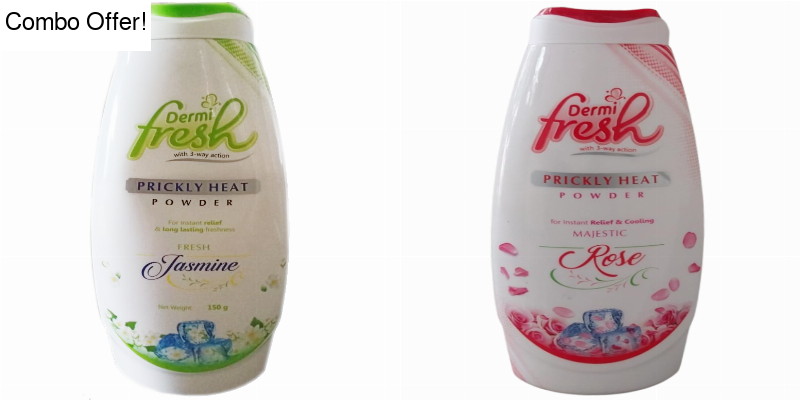 Stay cool, fresh, and irritation-free with Dermi Fresh Prickly Heat Powder – Jasmine + Rose Fragrance – 150g (Combo Offer). This dual fragrance powder combines the soothing floral aroma of jasmine with the refreshing fragrance of rose to provide all-day comfort and a pleasant scent. Specially formulated to relieve prickly heat, rashes, and itching, its sweat-absorbing formula keeps your skin dry, soft, and comfortable even in hot and humid conditions. Perfect for daily use by men and women, this combo is a must-have summer essential. Key Features: Stay fresh and confident every day with Dermi Fresh Prickly Heat Powder – Jasmine + Rose Fragrance – 150g (Combo Offer), your trusted summer skincare companion. |