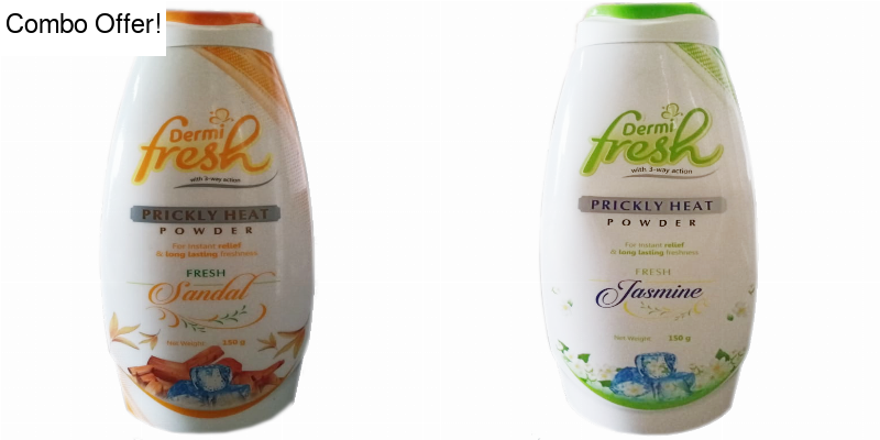Keep your skin cool, dry, and refreshed with Dermi Fresh Prickly Heat Powder – Sandal + Jasmine Fragrance – 150g (Combo Offer). This unique dual fragrance blend combines the calming aroma of sandal with the soothing scent of jasmine to provide long-lasting freshness and comfort. Specially formulated to relieve prickly heat, rashes, and sweat irritation, this powder absorbs excess moisture and keeps your skin soft and irritation-free, even in hot and humid weather. Suitable for both men and women, this combo is perfect for daily summer care. Key Features: Enjoy all-day cooling and freshness with Dermi Fresh Prickly Heat Powder – Sandal + Jasmine Fragrance – 150g (Combo Offer), your must-have summer skincare essential. |