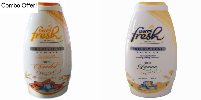Stay cool, dry, and protected with the Dermi Fresh Prickly Heat Powder – Sandal + Lemon Fragrance – 150g (Combo Offer). This special pack combines the calming freshness of sandal with the zesty energy of lemon, giving you the best of both worlds. Designed to relieve prickly heat, rashes, and itching, the sweat-absorbing formula keeps your skin irritation-free and comfortable, even in hot and humid weather. Perfect for daily use, this combo is suitable for both men and women. Key Features: Enjoy long-lasting freshness and cooling relief with Dermi Fresh Prickly Heat Powder – Sandal + Lemon Fragrance – 150g (Combo Offer), your ideal summer essential. |