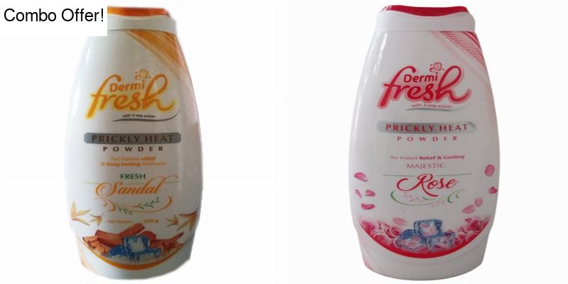 Keep your skin cool, dry, and fragrant with Dermi Fresh Prickly Heat Powder – Sandal + Rose Fragrance – 150g (Combo Offer). This refreshing combo combines the calming aroma of sandal with the soothing fragrance of rose to give you all-day freshness and comfort. Specially formulated to relieve prickly heat, rashes, and sweat irritation, the powder absorbs excess moisture and keeps skin soft and dry even in hot and humid weather. Suitable for men and women, this combo is a must-have summer essential. Key Features: Stay fresh and confident this summer with Dermi Fresh Prickly Heat Powder – Sandal + Rose Fragrance – 150g (Combo Offer), your trusted daily skincare solution. |