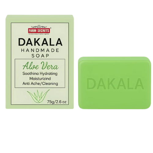 Farm Secrets Dakala Herbal Handmade Soap Soothing Herbal Cleanser with the Goodness of Aloe Vera Pamper your skin with the cooling and healing power of Aloe Vera in Farm Secrets Dakala Herbal Handmade Soap. Enriched with pure herbal ingredients like Aloe Vera, Coconut Oil, Turmeric, and Rose, this gentle handmade soap is perfect for daily skin nourishment and repair. Aloe Vera, known for its natural moisturizing and anti-inflammatory properties, hydrates the skin deeply, soothes irritation, and improves skin elasticity. It helps maintain the skin’s natural balance while leaving it soft, smooth, and refreshed. Key Benefits: • Deeply hydrates and softens dry or rough skin • Soothes irritation, itching, and sun damage • Promotes skin firmness and elasticity • Helps heal minor cuts, burns, or acne • Gently cleanses without stripping moisture • Maintains a natural, healthy glow Key Ingredients: Aloe Vera, Coconut Oil Directions for Use: Wet your skin and apply the soap directly or with a loofah. Gently lather and massage all over the body. Rinse thoroughly. Use daily for best results. |