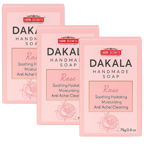 Farm Secrets Dakala Herbal Handmade Soap 75g – Rose Fragrance (Pack of 3) Herbal Skin Care for a Soft, Glowing You Refresh your skin naturally with Farm Secrets Dakala Herbal Handmade Soap, a nourishing blend of Aloe Vera, Coconut Oil, Turmeric, and Rose. Handcrafted using traditional herbal methods, this gentle soap cleanses your skin thoroughly while locking in moisture and supporting a healthy, radiant complexion. Its rich lather removes dirt, oil, and dead skin buildup without disturbing the skin’s natural balance. Whether you face dryness, acne, or dullness, this botanical soap helps restore clarity, softness, and glow—making it an ideal everyday skincare companion. Benefits at a Glance: • Deeply hydrates and softens dry skin • Antibacterial and anti-inflammatory properties • Soothes acne, irritation, and minor skin issues • Gently exfoliates for smoother, brighter skin • Restores elasticity and a natural healthy glow • Safe for all skin types, including sensitive skin Natural Goodness Inside: • Coconut Oil – Moisturizes and protects the skin barrier • Rose – Soothes irritation and adds a delicate fragrance How to Use: Lather the soap on wet skin, massage gently in circular motions, and rinse thoroughly. Use daily for soft, clear, and refreshed skin. |