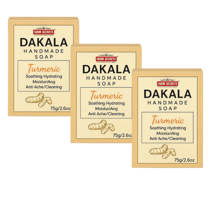 Give your skin the natural glow it deserves with Farm Secrets Dakala Herbal Handmade Turmeric Soap. Enriched with the powerful goodness of turmeric, this herbal soap helps fight pimples, acne, and blemishes while gently cleansing your skin. Its natural antibacterial and antioxidant properties keep your skin clear, soft, and radiant.