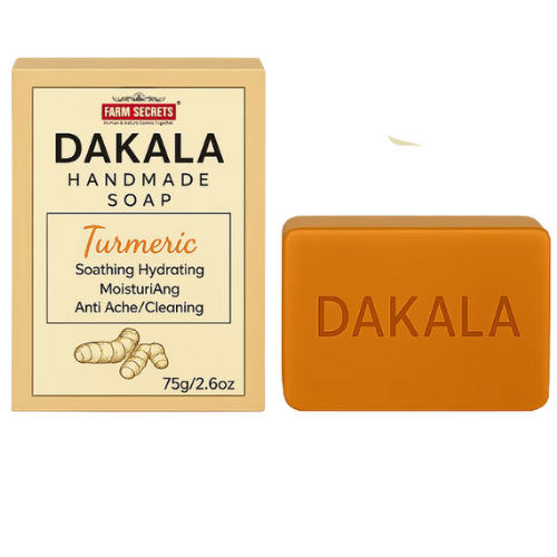 Farm Secrets Dakala Herbal Handmade Soap Herbal Antiseptic Cleanser with the Power of Turmeric Infused with the age-old healing power of Turmeric, Farm Secrets Dakala Herbal Handmade Soap is a natural bathing bar that deeply cleanses, protects, and rejuvenates your skin. This Ayurvedic soap is carefully crafted using Aloe Vera, Coconut Oil, Rose, and Turmeric, known for its anti-inflammatory and antibacterial properties. Turmeric helps reduce acne, brightens the skin, and fades blemishes, while Aloe Vera and Coconut Oil lock in moisture and restore suppleness. Ideal for all skin types, this soap not only removes impurities but also helps prevent dryness, dullness, and uneven skin tone. Key Benefits: • Combats acne and reduces skin inflammation • Brightens skin and fades dark spots or pigmentation • Provides antiseptic and antibacterial protection • Hydrates and softens dry, rough skin • Gently removes dead skin cells and impurities • Promotes smooth, even-toned, and radiant skin Key Ingredients: Turmeric & Coconut Oil Directions for Use: Apply to wet skin and work into a rich lather. Massage gently and rinse thoroughly. Use daily for glowing, blemish-free skin. |