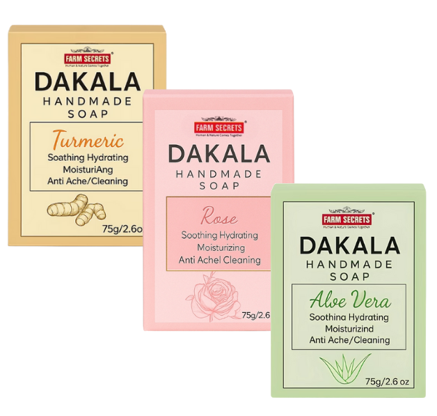 Experience the purity of nature with Farm Secrets Dakala Herbal Handmade Soap, crafted with natural herbs and skin-loving ingredients. This gentle handmade soap cleanses deeply while keeping your skin soft, nourished, and refreshed. Free from harsh chemicals, it is safe for daily use and suitable for all skin types, including sensitive skin.