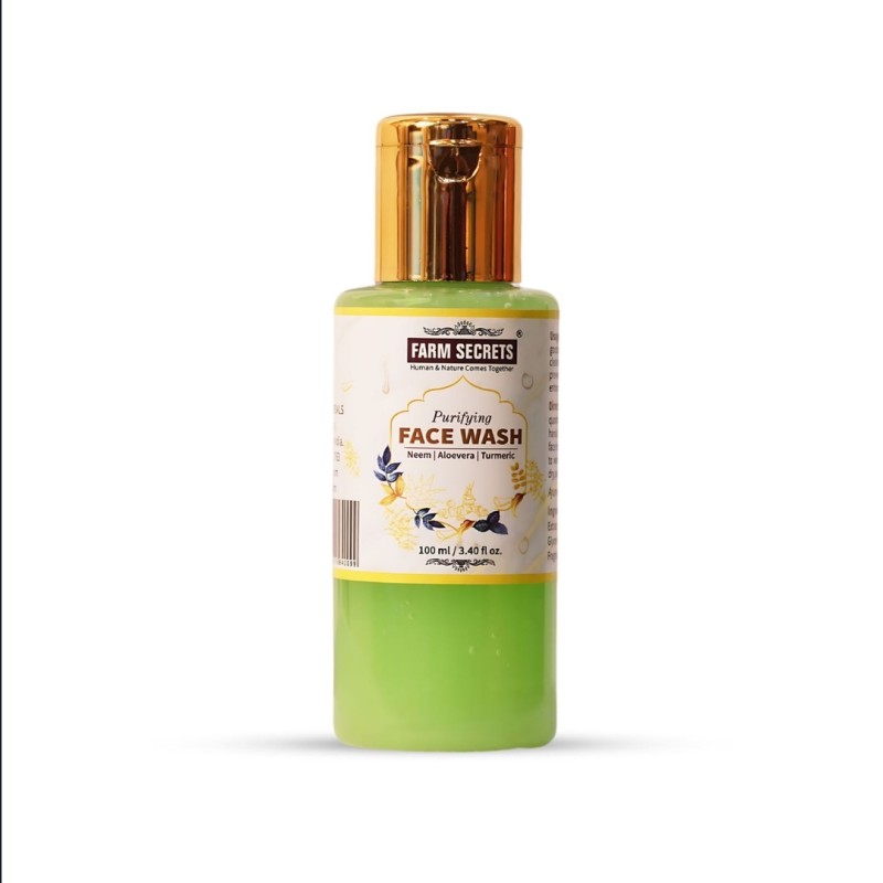 Farm Secrets Purifying Face Wash Gentle Herbal Cleanser for Clear, Glowing Skin Reveal your skin's natural radiance with Farm Secrets Purifying Face Wash, crafted with the healing power of Neem, Aloe Vera, Turmeric, and Tea Tree Oil. This Ayurvedic face wash gently removes dirt, oil, and impurities, leaving your skin fresh, clean, and visibly glowing. The herbal formula helps control acne, reduce blemishes, and prevent premature aging while keeping the skin hydrated and soft. Ideal for daily use, it suits all skin types and works effectively to even out skin tone, reduce tan, and lighten acne scars. Key Benefits: • Deeply cleanses and purifies the skin • Enhances natural glow and brightness • Hydrates and softens dry or rough skin • Reduces acne, pimples, and blemishes • Fades scars and stretch marks over time • Helps prevent premature aging and sun tan Key Ingredients: Aloe Vera Extract, Neem Extract, Turmeric Extract, Tea Tree Oil Directions for Use: Moisten your face with water. Squeeze a small amount of face wash into your palm, rub gently to form a lather, and massage in circular motions. Rinse thoroughly and pat dry. |