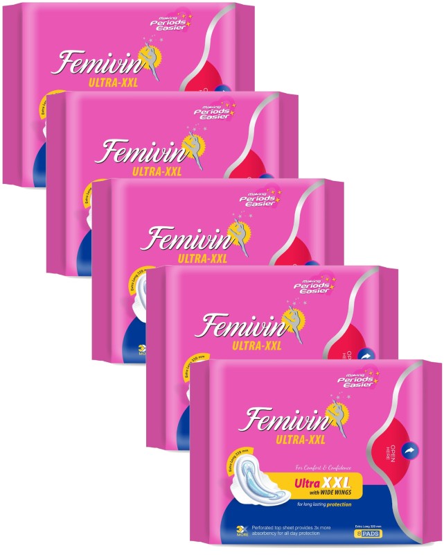 Ensure maximum comfort and all-day protection with Femivin Ultra XXL Sanitary Pads for Women – 8 Pads (Pack of 5). Designed with wide wings and an ultra-absorbent core, these pads provide 3X more absorption than regular sanitary pads, keeping you dry, confident, and worry-free throughout your day and night. The soft, breathable material ensures gentle care for sensitive skin while preventing leaks and discomfort. Key Features: Stay confident, dry, and comfortable during your period with Femivin Ultra XXL Sanitary Pads – 8 Pads (Pack of 5), your reliable companion for day and night protection. |