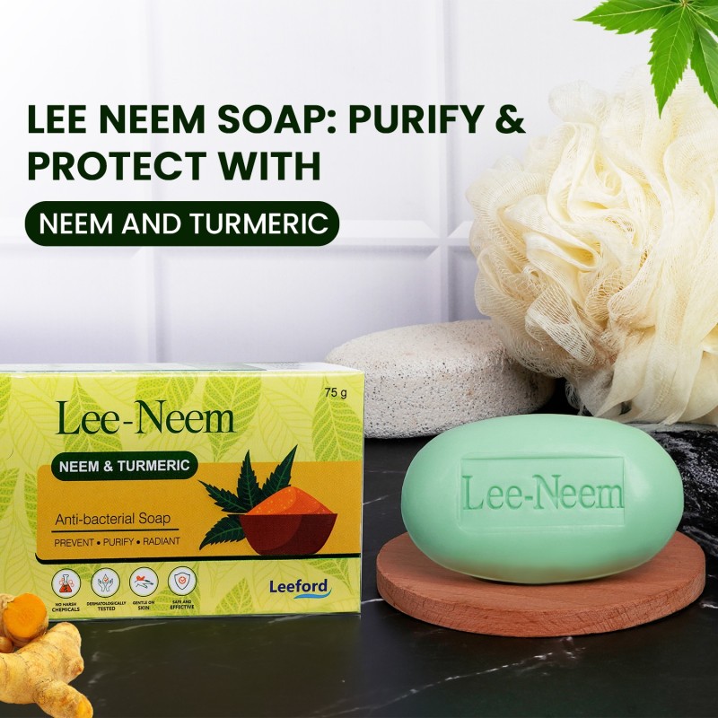 Maintain clear, healthy, and naturally protected skin with Lee-Neem Neem & Turmeric Anti-Bacterial Soap – 75g.