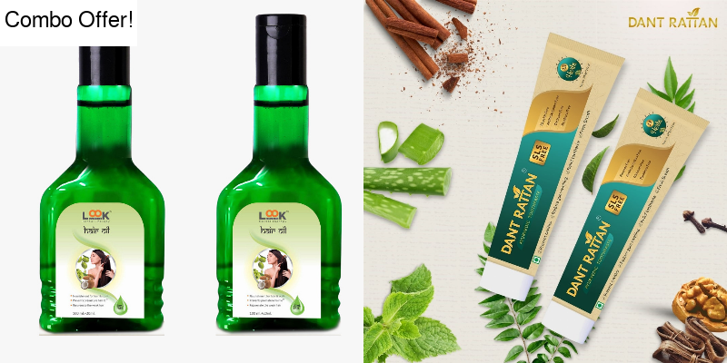 Switch to a herbal, chemical-free care routine with Look 18 Herbal Hair Oil and Dant Rattan Ayurvedic SLS Free Toothpaste – Pack of 2 for healthy hair and strong teeth.