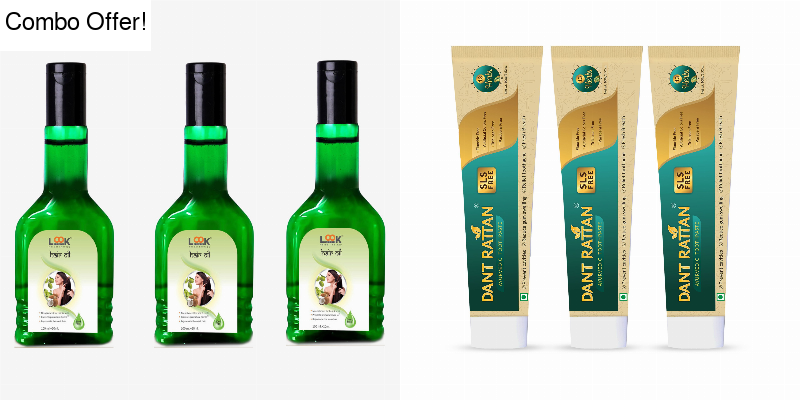 Care for your hair and oral health naturally with the Look 18 Herbal Hair Oil (100ml + 20ml Free) with Dant Rattan Ayurvedic SLS Free Toothpaste – 100g (Pack of 3). The herbal hair oil, enriched with natural extracts, reduces hair fall, controls dandruff, and promotes healthy hair growth while leaving hair soft, smooth, and manageable. Paired with Dant Rattan Ayurvedic SLS Free Toothpaste, free from harsh foaming agents and enriched with Ayurvedic herbs, it strengthens gums, fights cavities, and ensures fresh breath, providing complete daily care. Key Features: Switch to a herbal, chemical-free care routine with Look 18 Herbal Hair Oil with Dant Rattan Ayurvedic SLS Free Toothpaste – 100g (Pack of 3) for healthy hair and strong teeth every day |