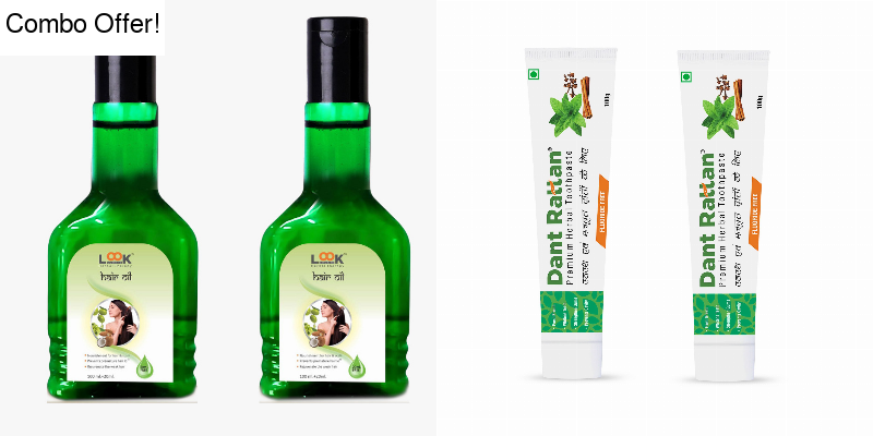 Bring home the perfect herbal care combo for healthy hair and strong teeth with Look 18 Herbal Hair Oil with Dant Rattan Premium Herbal Toothpaste – Pack of 2.