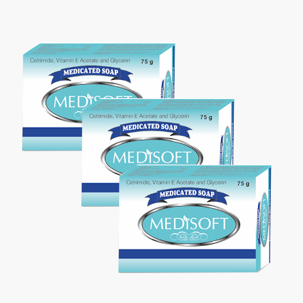 Maintain healthy, soft, and hydrated skin every day with Medisoft Soap – Cetrimide, Vitamin E & Glycerin (Pack of 3).