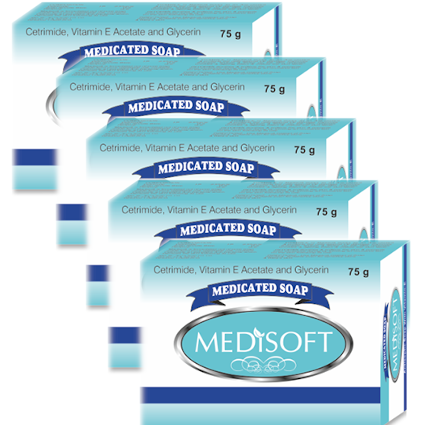 Medisoft Soap - Cetrimide, Vitamin E & Glycerin - 75G (Pack of 5)
